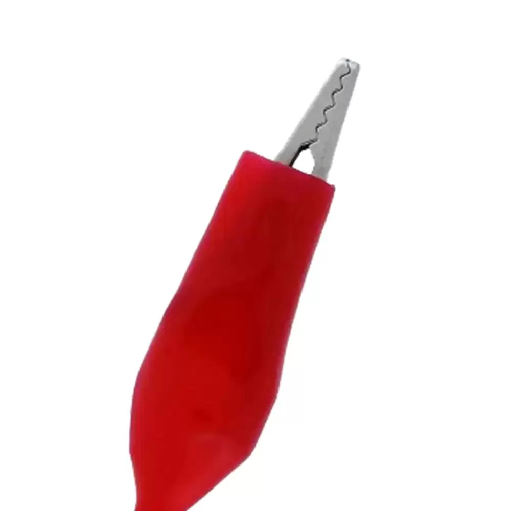 Caimán mediano de 4cm de largo por 1 cm de ancho. Fabricado en lámina calibre 26, acabado niquelado y mango color rojo. Soporta hasta 5 Amperes. Se usa para pasar corriente, alimentar circuitos eléctricos y electrónicos, conectar bocinas, ventiladores, motores, entre otros.