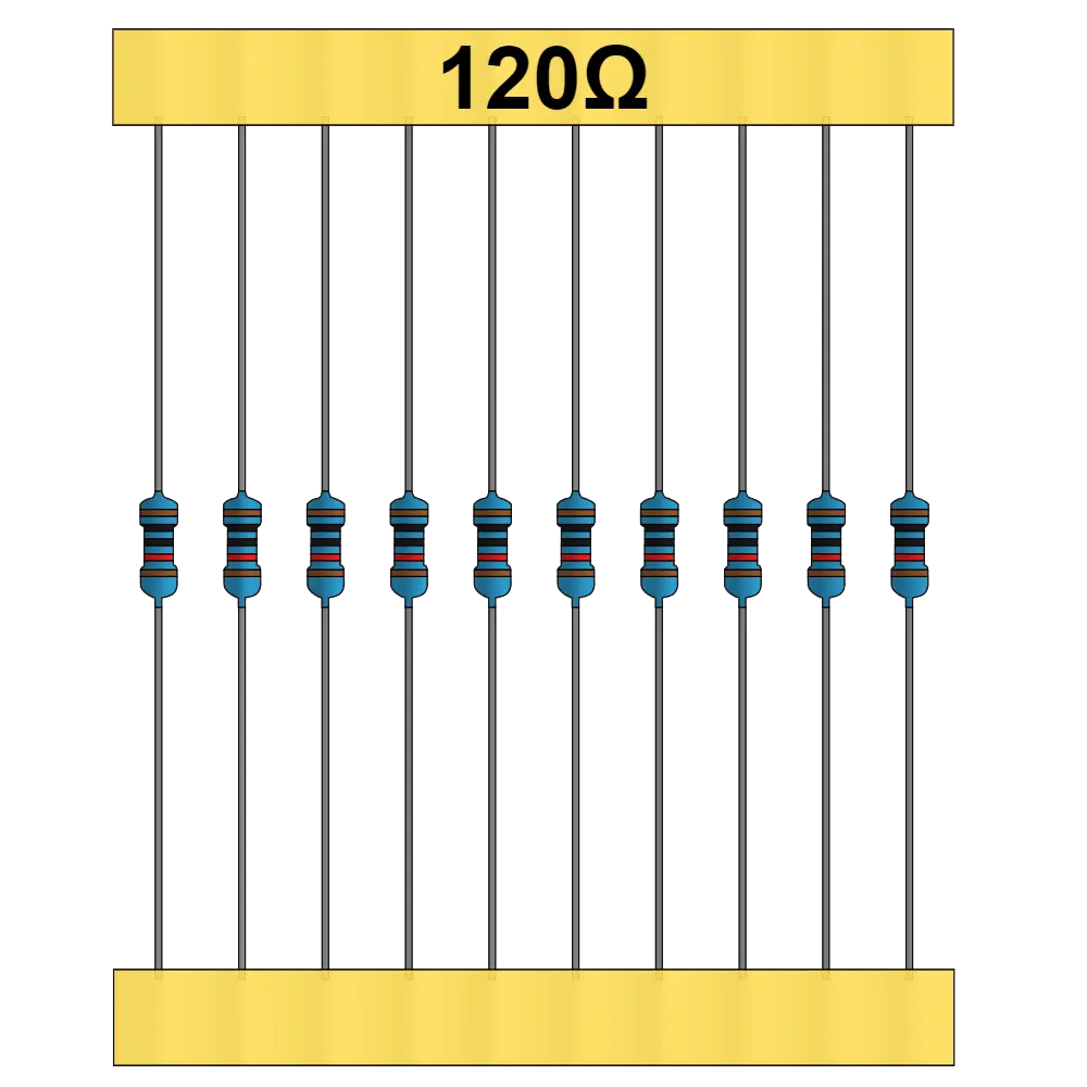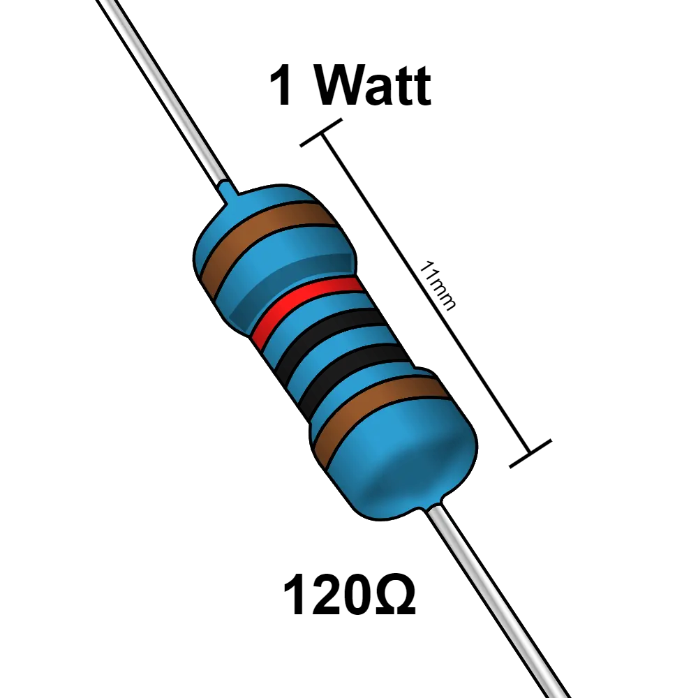 Las resistencias eléctricas son componentes semiconductores su principal función es limitar el paso de la corriente en un circuito eléctrico. tiene diferentes uso, puede usarse desde un componente que ayude a generar un pequeño retardo en el funcionamiento de un circuito hasta generar diferentes frecuencias y poder aplicar un control en ciertos aparatos. Esta es una resistencia de 120 Ω y soporta una potencia maxima de 1 W.
