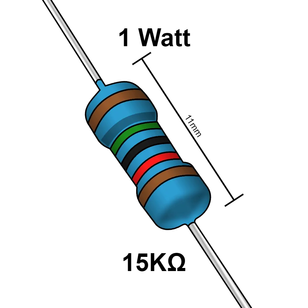 Las resistencias eléctricas son componentes semiconductores su principal función es limitar el paso de la corriente en un circuito eléctrico. tiene diferentes uso, puede usarse desde un componente que ayude a generar un pequeño retardo en el funcionamiento de un circuito hasta generar diferentes frecuencias y poder aplicar un control en ciertos aparatos. Esta es una resistencia de 15 KΩ y soporta una potencia maxima de 1 W.