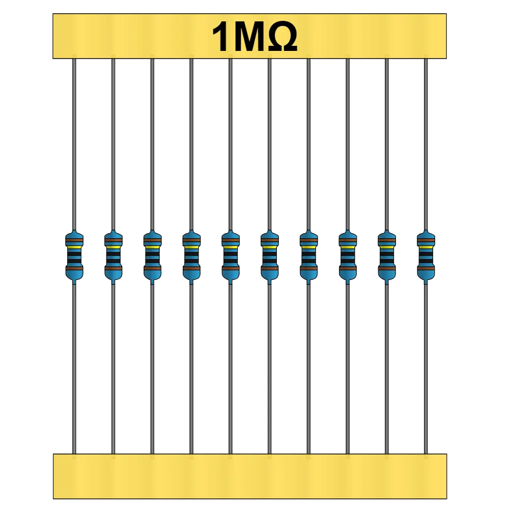 Las resistencias eléctricas son componentes semiconductores su principal función es limitar el paso de la corriente en un circuito eléctrico. tiene diferentes uso, puede usarse desde un componente que ayude a generar un pequeño retardo en el funcionamiento de un circuito hasta generar diferentes frecuencias y poder aplicar un control en ciertos aparatos. Esta es una resistencia de 1 MΩ y soporta una potencia maxima de 1 W.