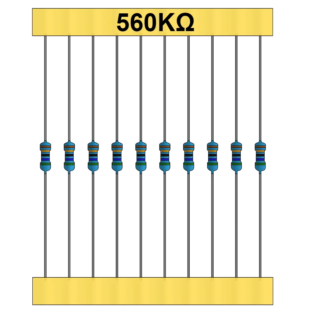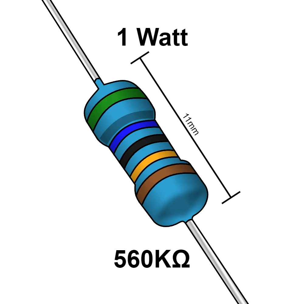 Las resistencias eléctricas son componentes semiconductores su principal función es limitar el paso de la corriente en un circuito eléctrico. tiene diferentes uso, puede usarse desde un componente que ayude a generar un pequeño retardo en el funcionamiento de un circuito hasta generar diferentes frecuencias y poder aplicar un control en ciertos aparatos. Esta es una resistencia de 560 KΩ y soporta una potencia maxima de 1 W.