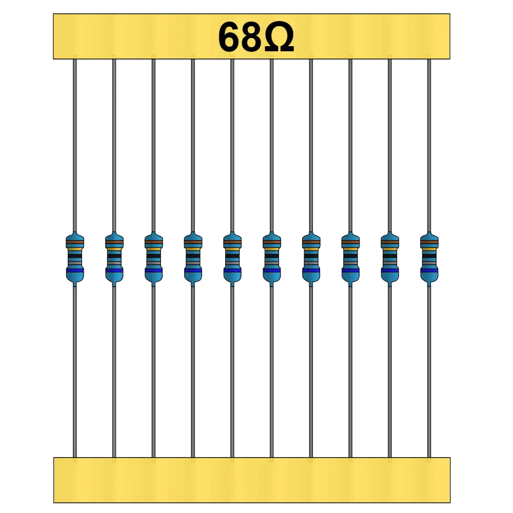 Las resistencias eléctricas son componentes semiconductores su principal función es limitar el paso de la corriente en un circuito eléctrico. tiene diferentes uso, puede usarse desde un componente que ayude a generar un pequeño retardo en el funcionamiento de un circuito hasta generar diferentes frecuencias y poder aplicar un control en ciertos aparatos. Esta es una resistencia de 68 Ω y soporta una potencia maxima de 1 W.
