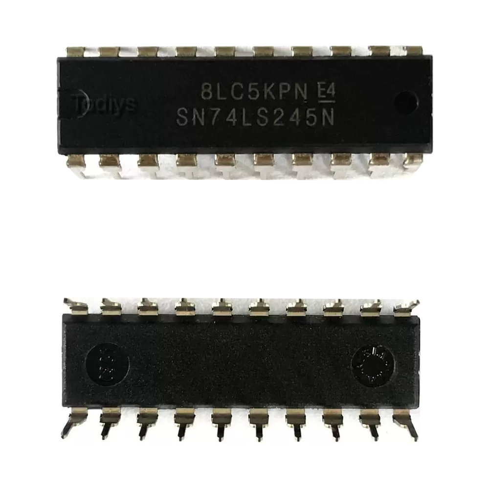 El SN74LS245N es un transceptor de bus octal diseñado para comunicación bidireccional asincrónica entre buses de datos. La implementación de la función de control minimiza los requisitos de temporización externos. El dispositivo permite la transmisión de datos desde el bus A al bus B o desde el bus B al bus A, dependiendo del nivel lógico en la entrada de control de dirección (DIR). La entrada de habilitación de salida (OE) puede inhabilitar el dispositivo para que los buses estén efectivamente aislados.