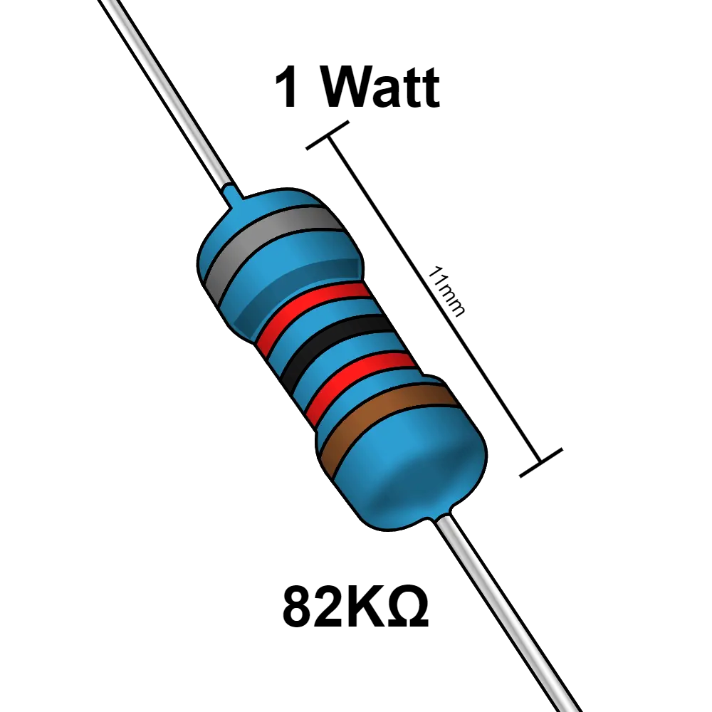 Las resistencias eléctricas son componentes semiconductores su principal función es limitar el paso de la corriente en un circuito eléctrico. tiene diferentes uso, puede usarse desde un componente que ayude a generar un pequeño retardo en el funcionamiento de un circuito hasta generar diferentes frecuencias y poder aplicar un control en ciertos aparatos. Esta es una resistencia de 82 KΩ y soporta una potencia maxima de 1 W.