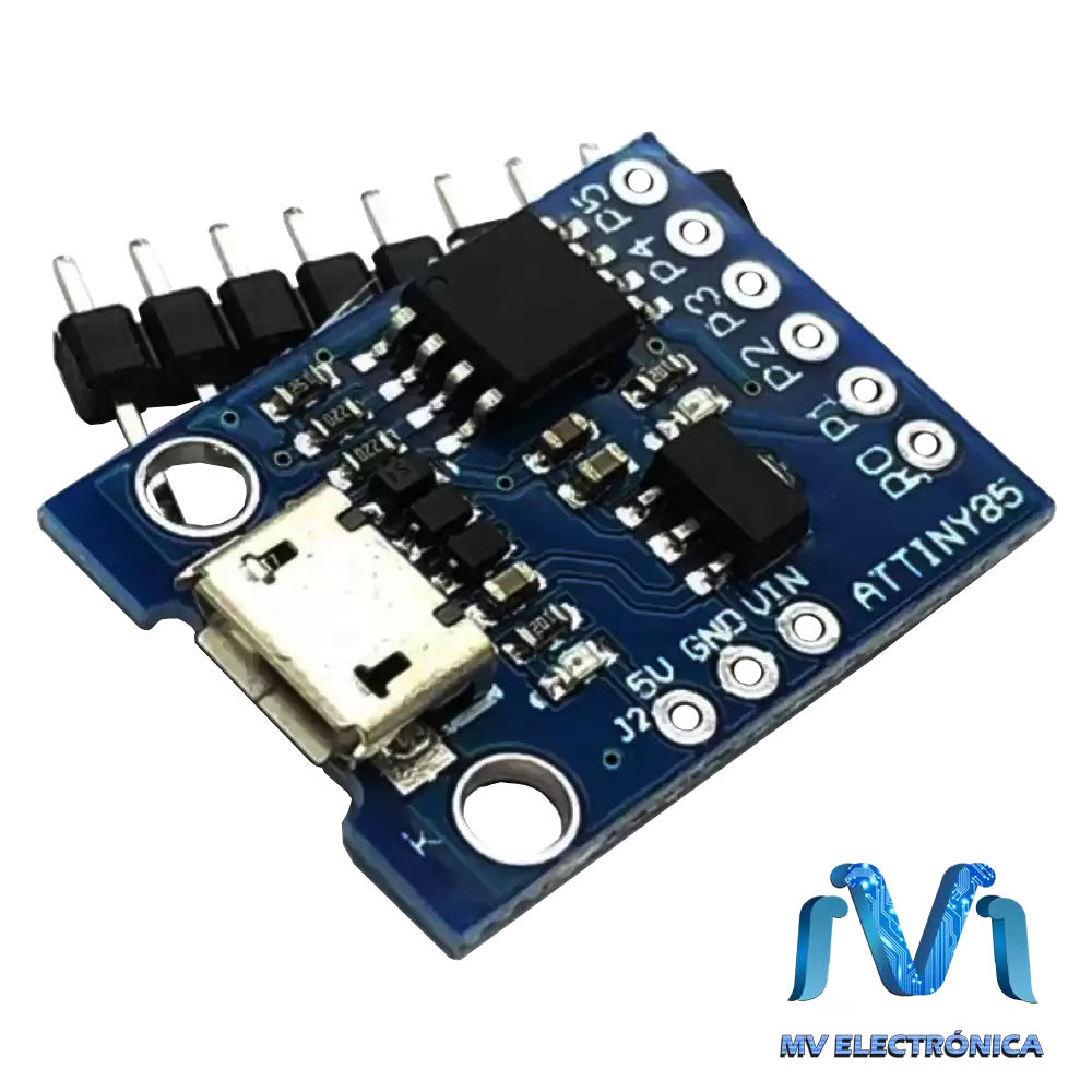 La placa Digispark Attiny85 es una micro placa de desarrollo compatible (con algunas limitaciones) con el entorno Arduino ideal para proyectos que requieren mínima infraestructura de proceso.