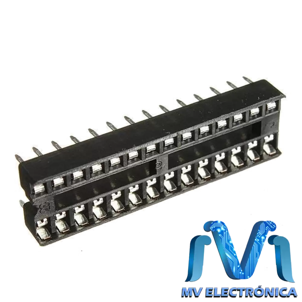 Base para circuitos integrados de 28 pines, esta base ayuda a poder montar circuitos integrados a placas sin tener que soldar cada uno.