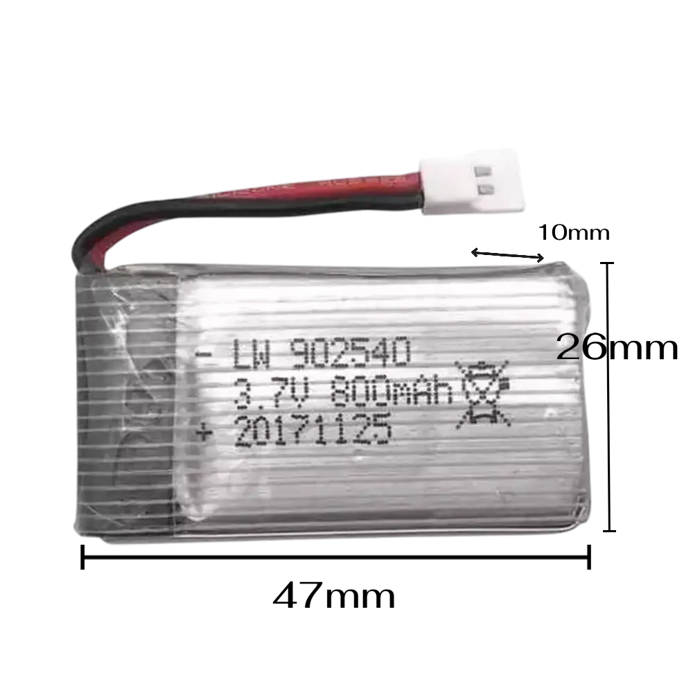 Batería de Litio Lipo 3.7 V 800 mAh, de pequeño tamaño para proyectos portátiles que requieran voltaje estable con un tamaño pequeño e ideal para proyectos escolares, drones, Seguidores de linea, etc.