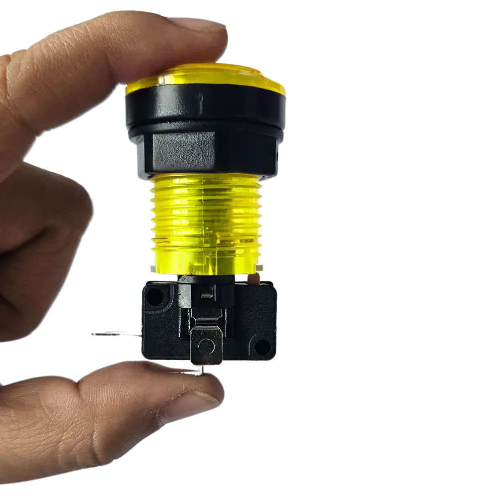 Botón Maquinita Arcade Luminoso Amarillo Con Microswitch Rosca:24mm Boton:33mm