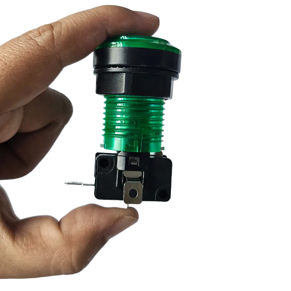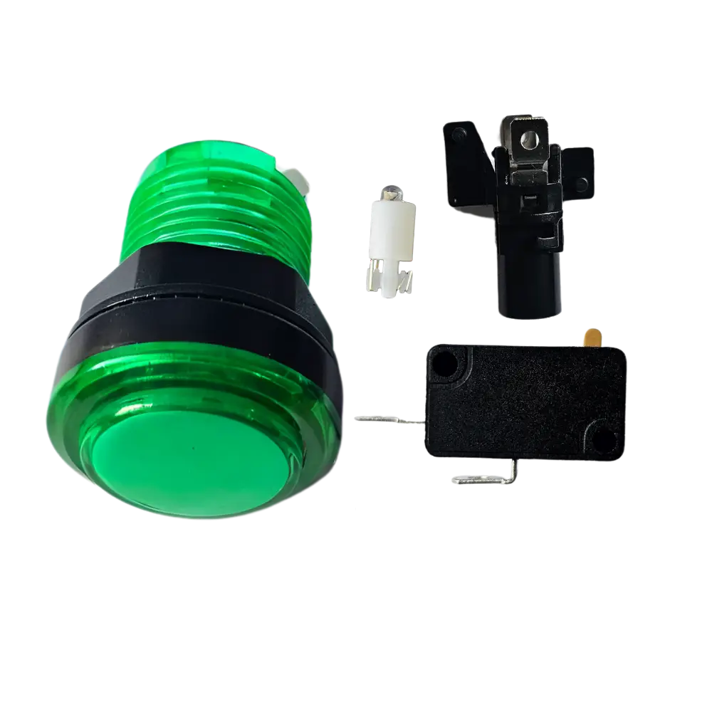 Botón Maquinita Arcade Luminoso Verde Con Microswitch Rosca:24mm Boton:33mm