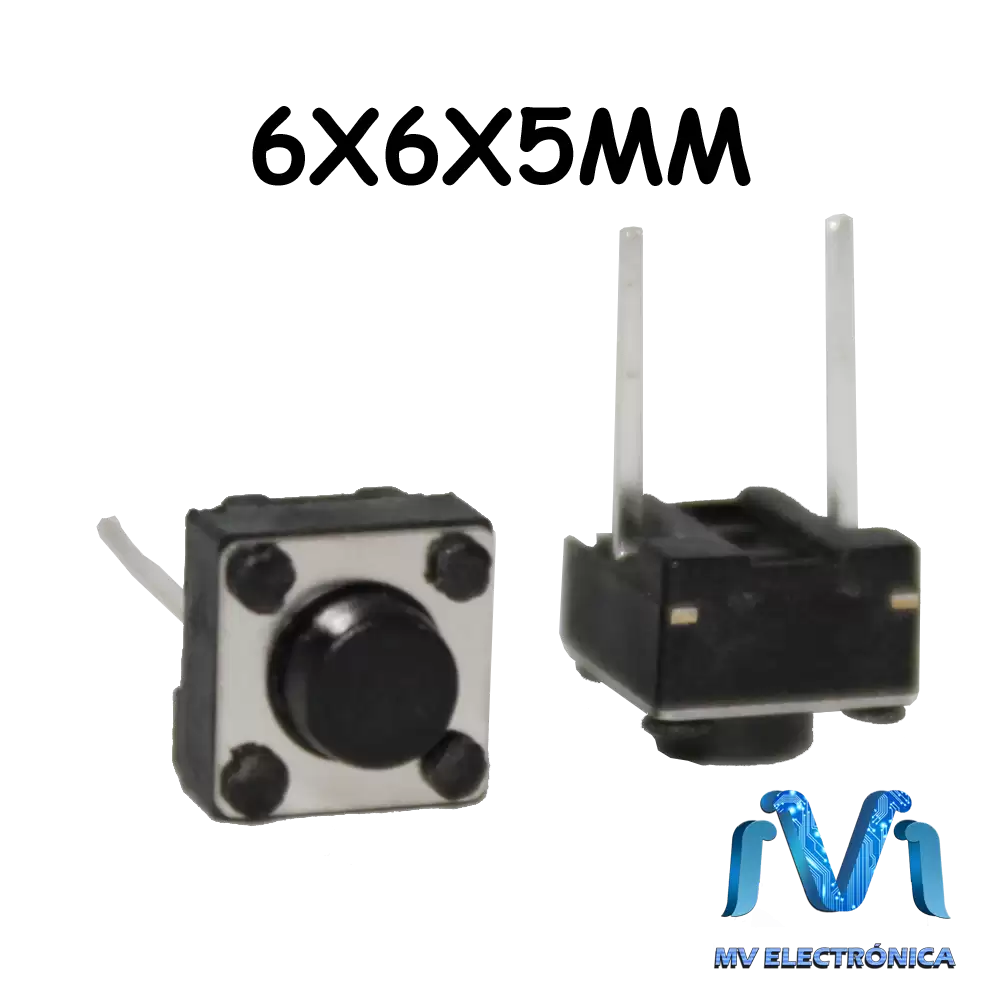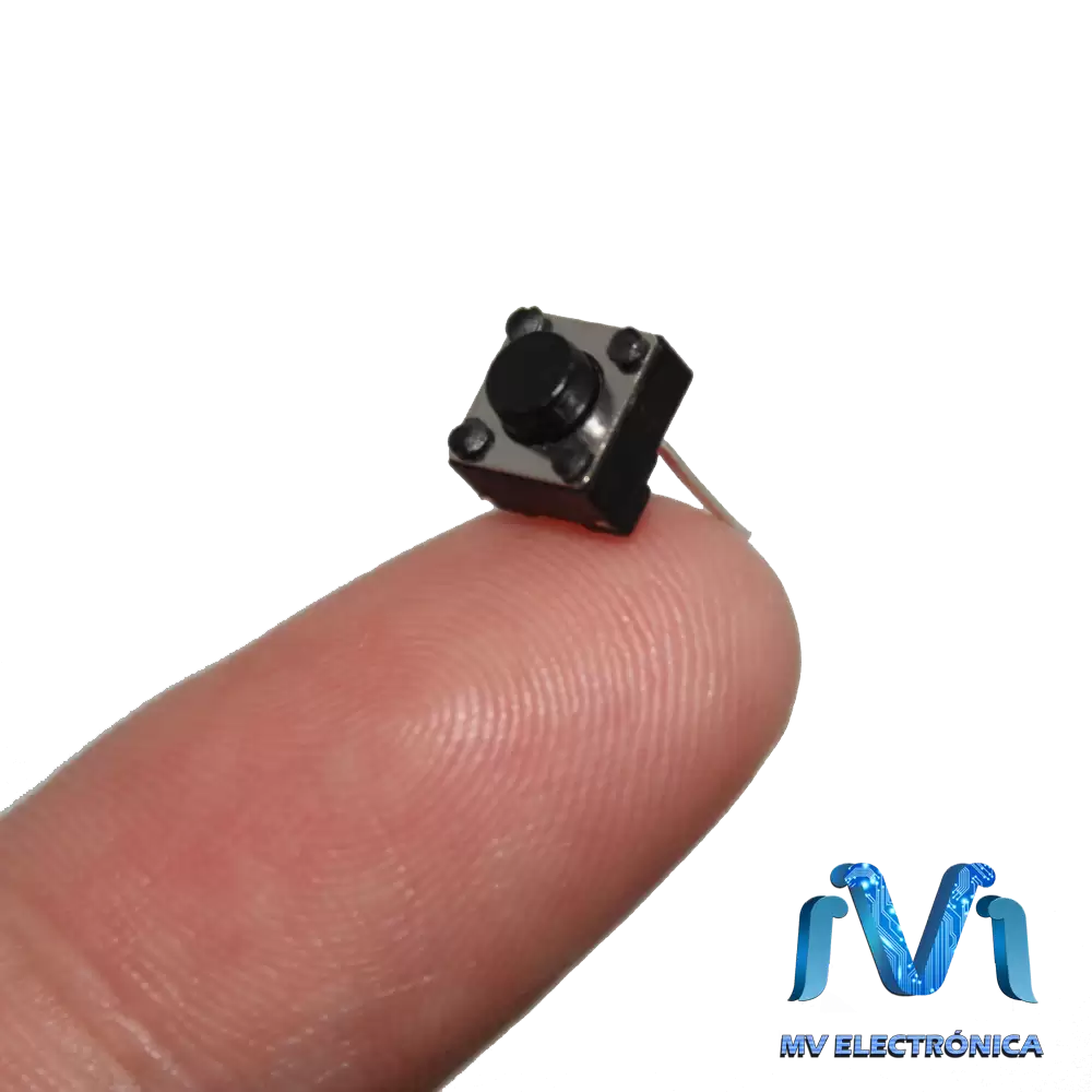 Microswitch de tipo Push-Button (boton pulsador) de 2 terminales, con activación al presionar (normalmente abierto) Puede ser un contacto normalmente abierto en reposo NA (Normalmente abierto), o con un contacto NC (normalmente cerrado) en reposo. Consta del botón pulsador; una lámina conductora que establece contacto con los dos terminales al oprimir el botón, y un muelle que hace recobrar a la lámina su posición primitiva al cesar la presión sobre el botón pulsador.