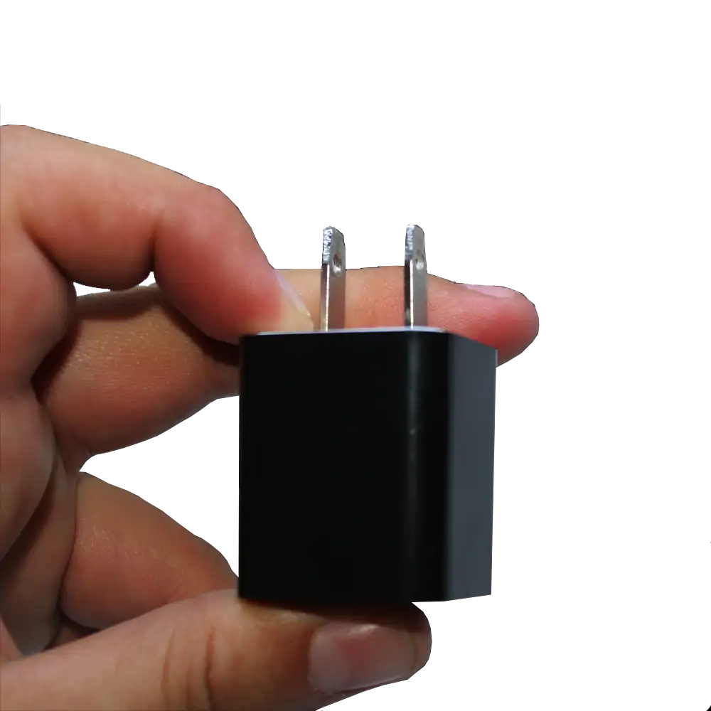 cargador de pared con clavija fija, tiene dos puertos en paralelo, con una salida de 1.8A o 0.8A con dos dispositivos al mismo tiempo, es ideal para dispositivos de bajo consumo.