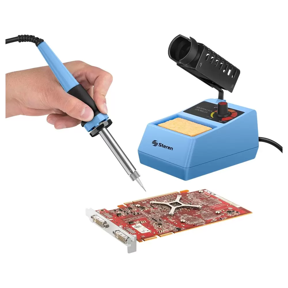 Cautín de lápiz tipo estación, con control eléctrico de temperatura, de 45 Watts. ideal para talleres de reparaciones de equipos electrónicos y hobbistas.