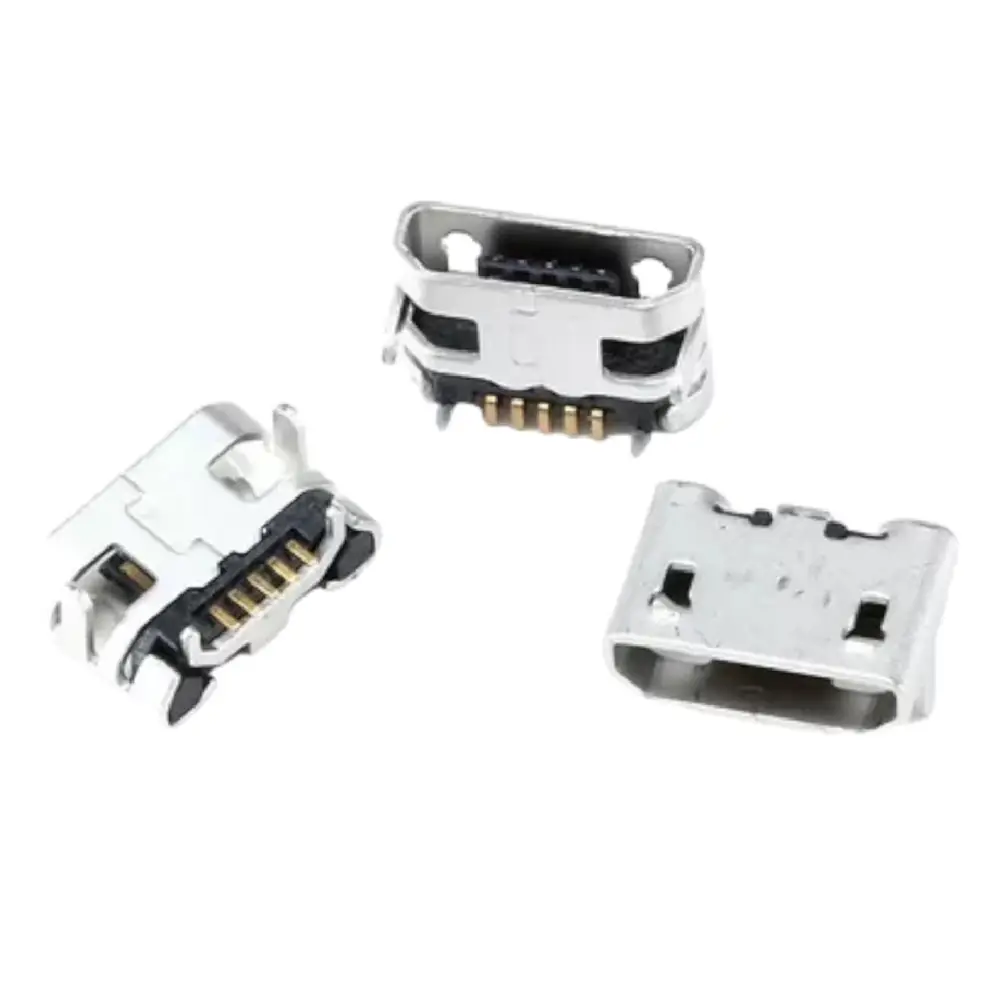 Conector Micro Usb Hembra 5 Pines Mas 4 Pines De Fijacion 4.85x7.3x2.2 Mm