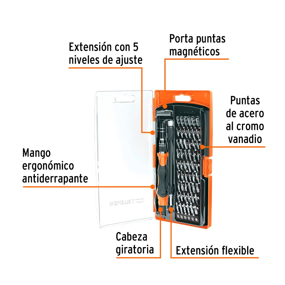 Desarmador De Precision Con 57 Puntas Intercambiables Y Extension Flexible