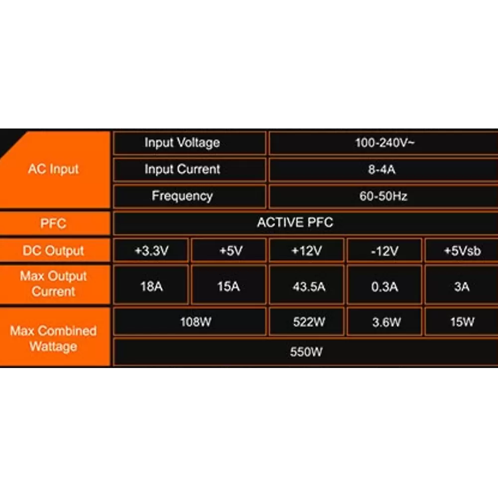 Fuente De Poder Gigabyte 550w 80 Plus Bronze Negro Atx No Modular