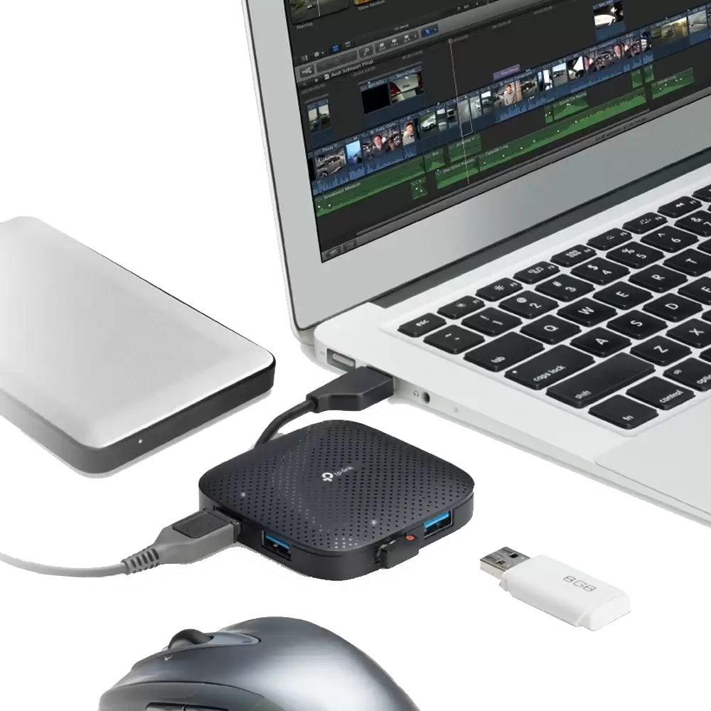 La transferencia de datos de los 4 puertos implica que ya no tendrá que intercambiar dispositivos, podrá tenerlos todos conectados.