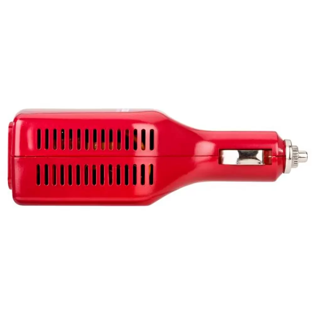 Este inversor toma la energía de la batería del auto para transformarla en voltaje de corriente alterna, que es la que utilizas en tu casa, de esta forma podrás conectar, en tu automóvil, aparatos como laptops, pantallas o videojuegos, entre otros. Es importante que los equipos que conectes no sobrepasen los 75 W de consumo.