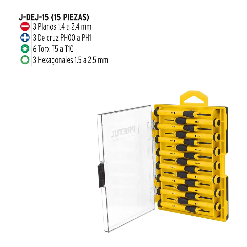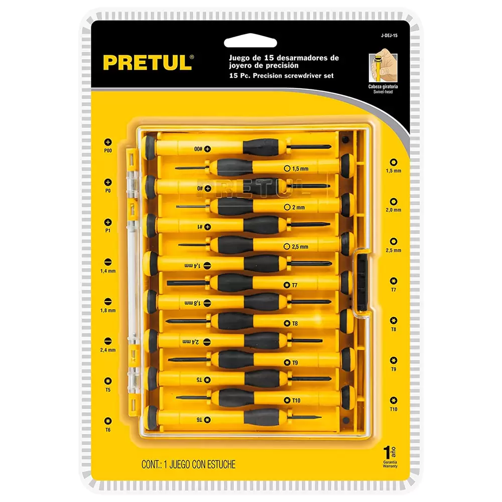 Juego De 15 Desarmadores De Precisión Con Mago Antiderrapante Y Estuche Pretul