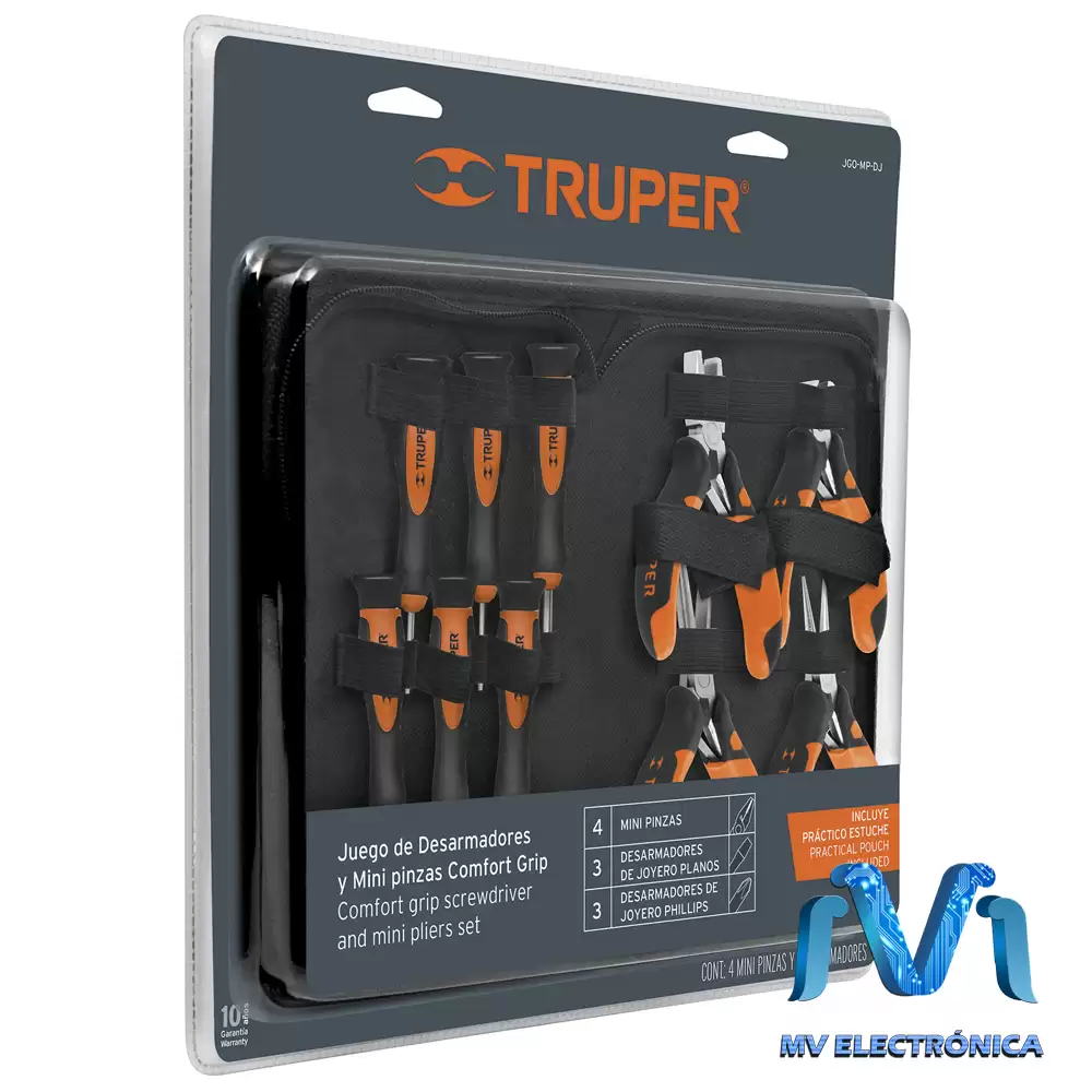 Juego De 6 Desarmadores De Joyero Y 4 Mini Pinzas Comfort Grip Truper