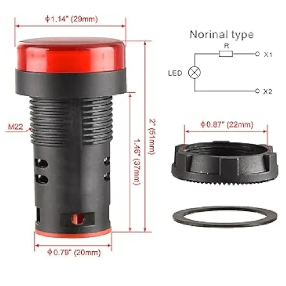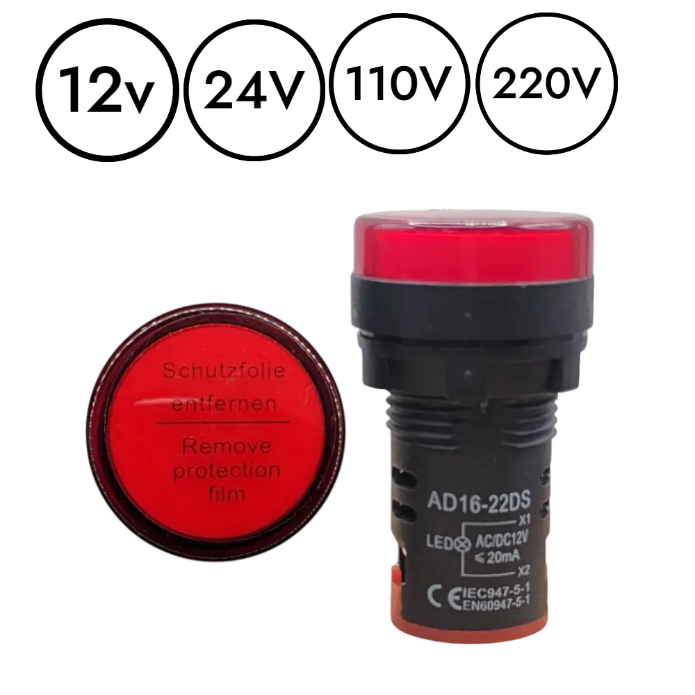 Lampara Indicadora Foco Piloto Rojo Ac-dc 110v-220v A16-22ds