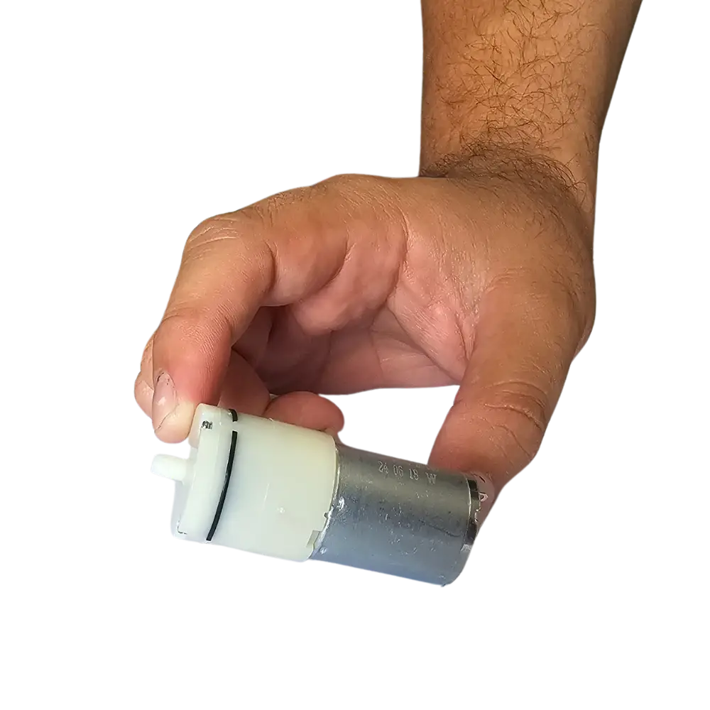 Bomba de aire compacta de tipo diafragma sin aceite de 6 v. consume de 40 - 300 mA es útil por su carcasa para ser utilizadas en cafeteras, laboratorios y equipos de monitoreo de presión arterial.