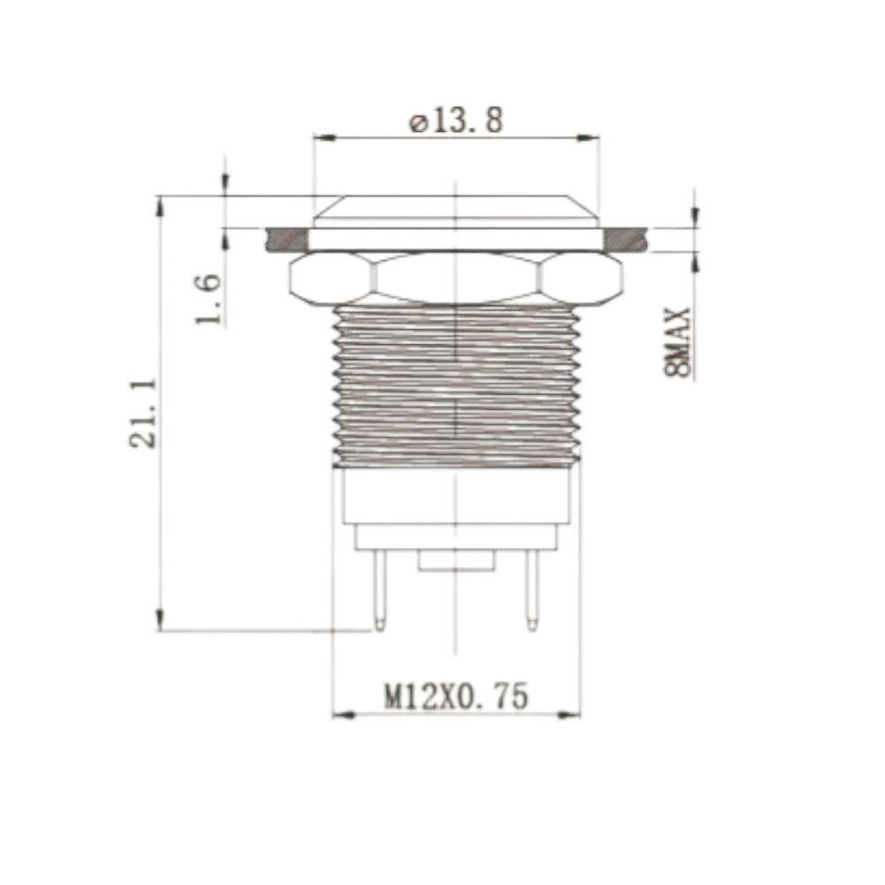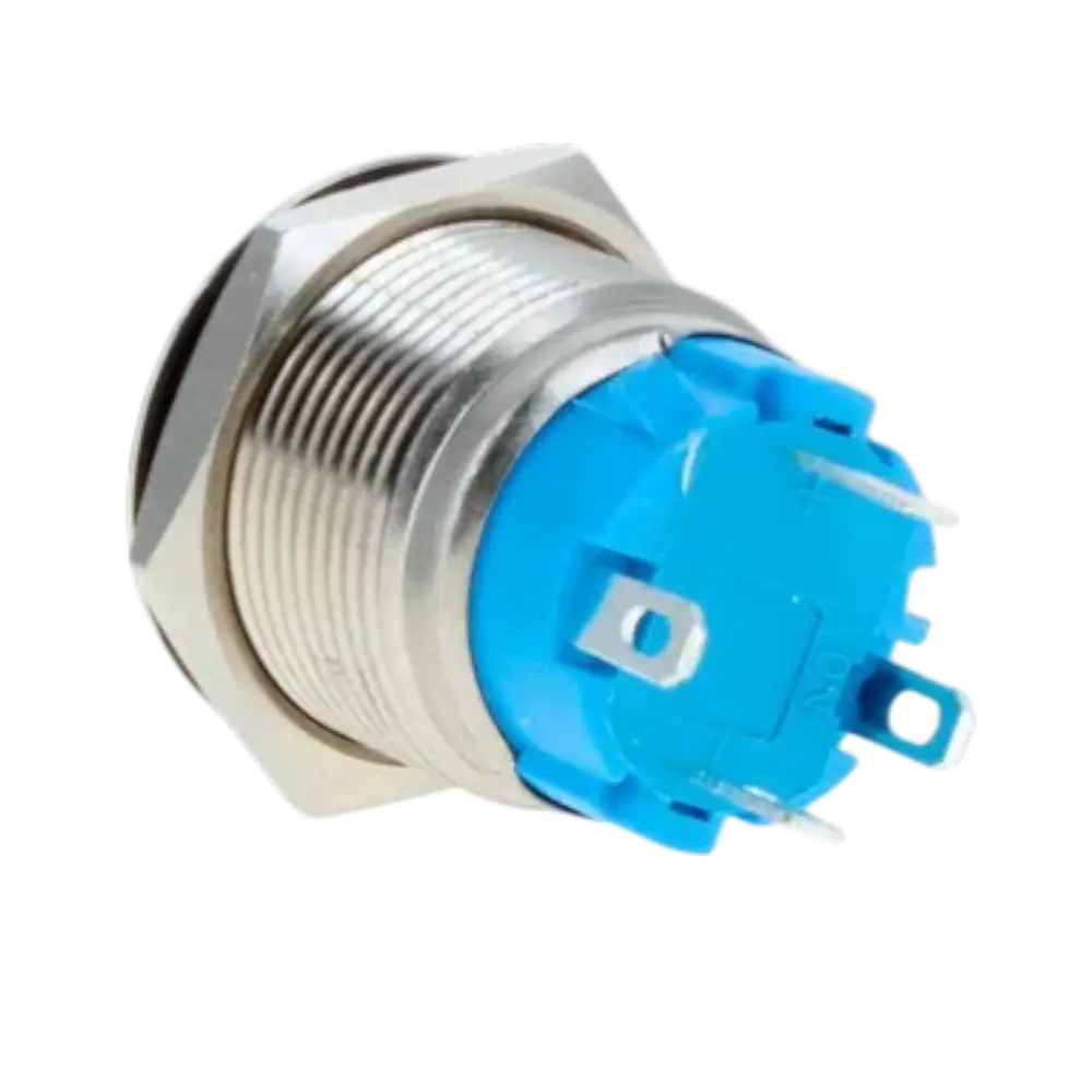 Mini Switch Pulsador Normalmente Abierto Metalico Con Foco Piloto Azul 12-24v 2a 4 Pines
