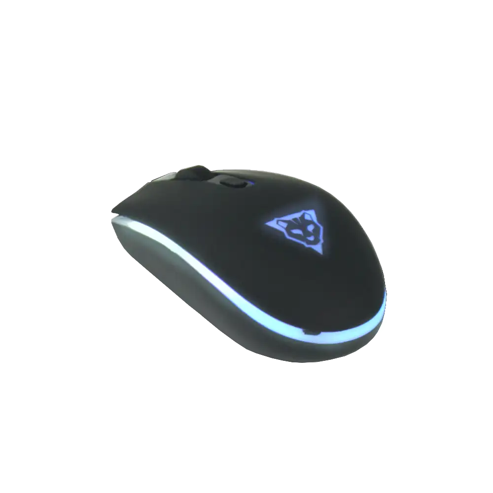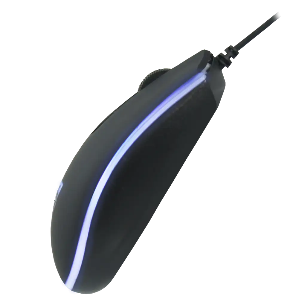 Este mouse cuenta con una iluminación tipo arcoíris la cual cambia de manera aleatoria y es alámbrico.