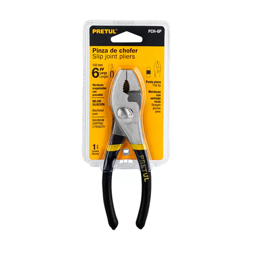 - Punta plana y mordaza con estriado diagonal para agarre firme y seguro.