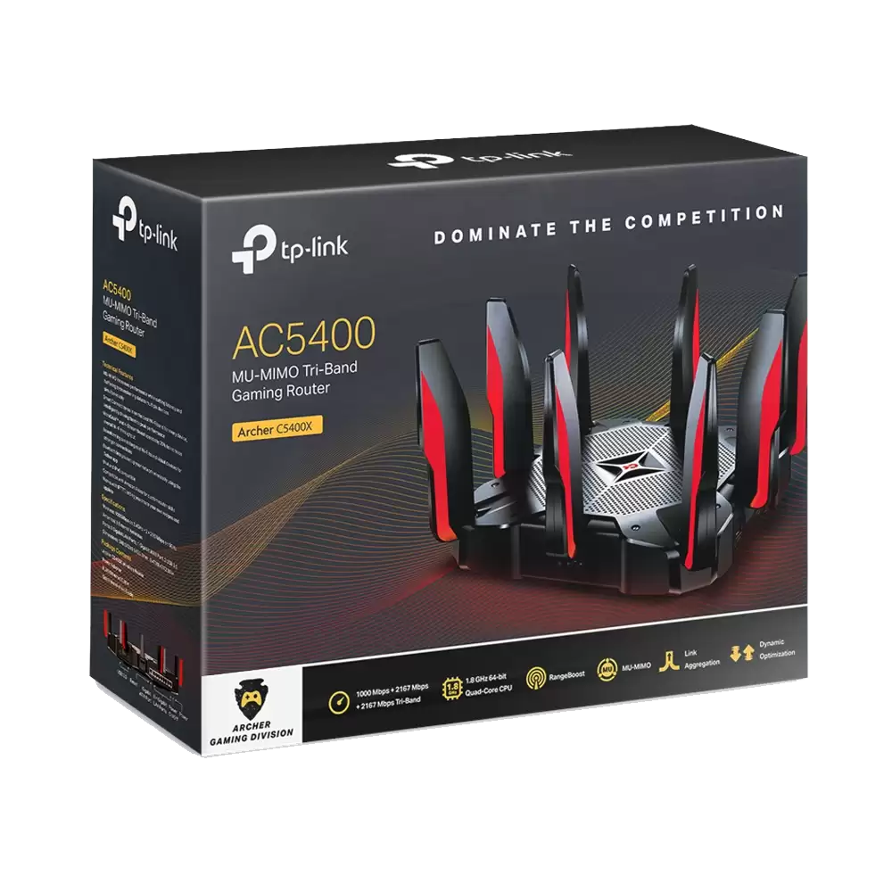 Entra en acción con increíbles velocidades de Wi-Fi de tres bandas AC5400 sobre 2.4 GHz (1000 Mbps) y dos bandas de 5 GHz (2167 Mbps). Tres bandas de Wi-Fi facilitan la optimización de la red y la competitividad en el fragor de la batalla. Dedica una banda al tráfico de juegos mientras que las dos restantes brindan Wi-Fi de alta velocidad al resto del hogar. O habilita Smart Connect para que el router se concentre en la mejor banda de Wi-Fi para cada dispositivo, llevándolos de manera inteligente al máximo rendimiento.
