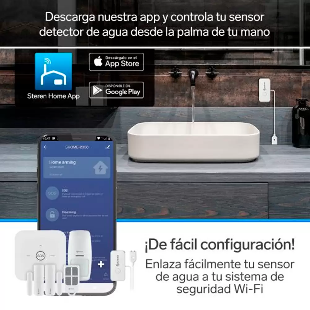 Este sensor el complemento perfecto para tu Sistema de seguridad Wi-Fi* SHOME-2000 o SHOME-2100. Es ideal para detectar derrames de agua en lugares como baños, sótanos, cocinas y muchos más.
