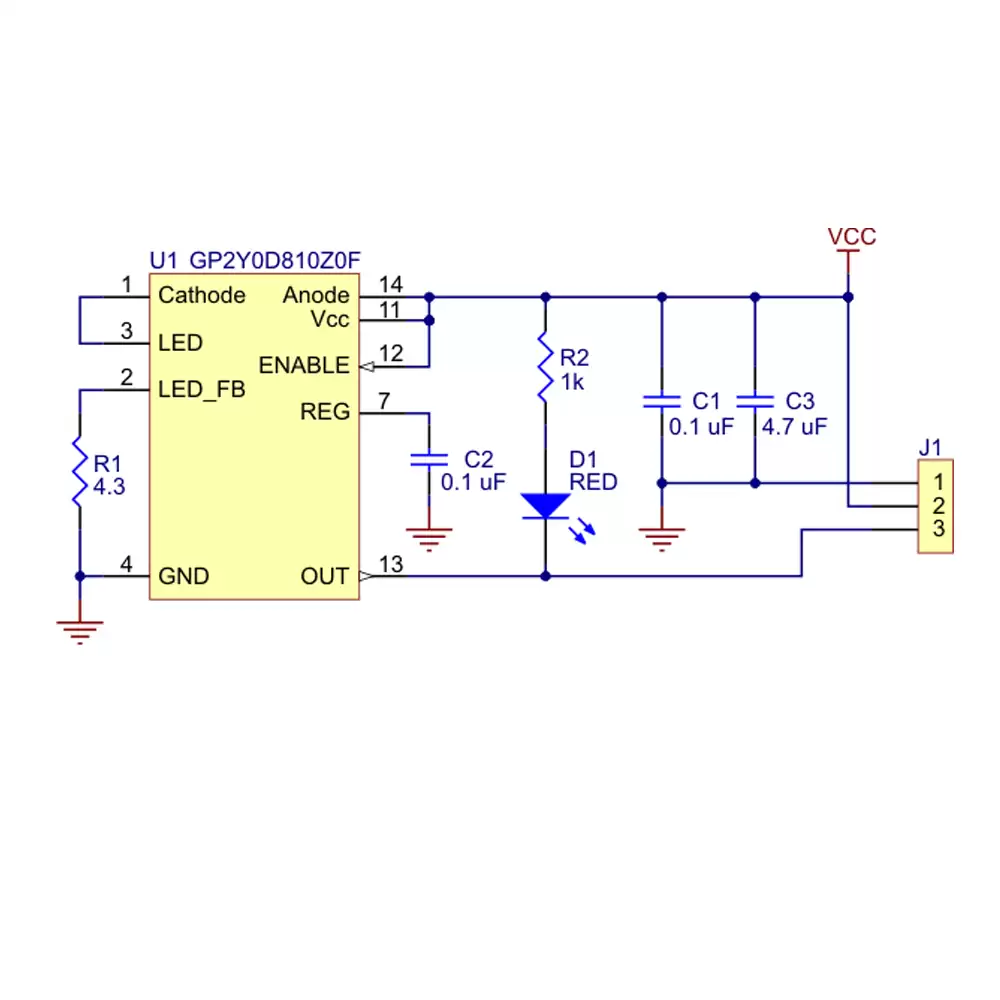 El módulo sensor de distancia digital Sharp detecta la presencia de objetos entre los 0.5 a 15 cm de distancia a una respuesta rápida; hay que tener en cuenta que este sensor solo detecta la presencia del obstáculo dentro de esta distancia, ya que no es posible medir la distancia de dicho obstáculo. Siendo una opción para la detección de obstáculos o temporizadores de objetos.