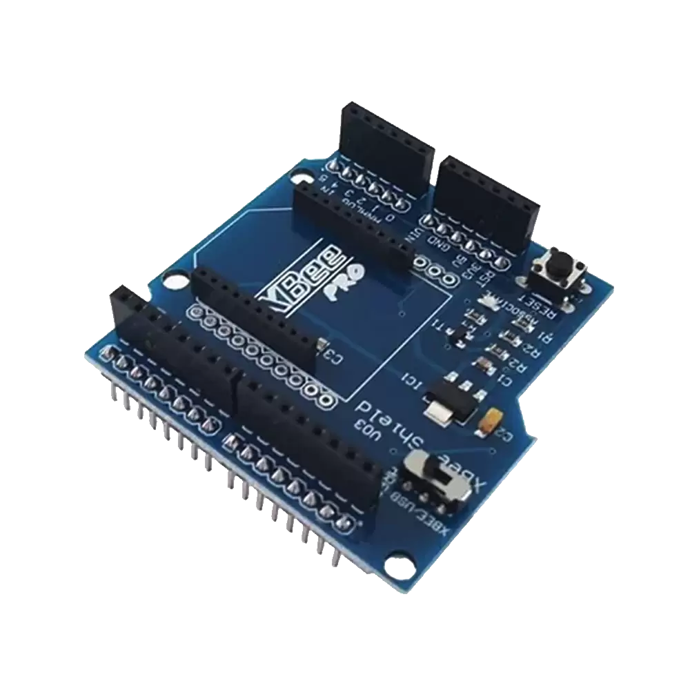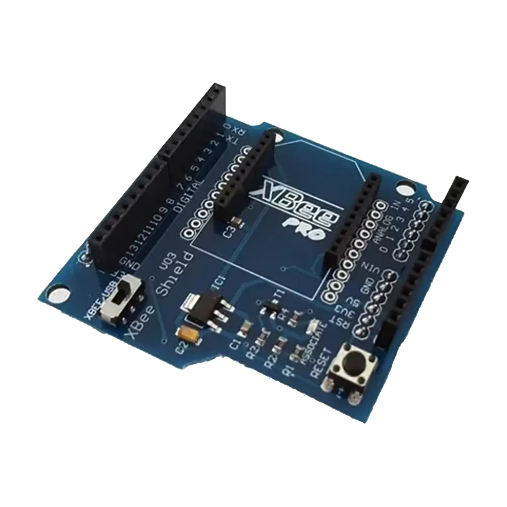 Placa para Arduino UNO que permite incorporar un módulo inalámbrico XBee de MaxStream a tu Arduino. Usa un protocolo modificado de ZigBee y permite establecer comunicaciones inalámbricas.