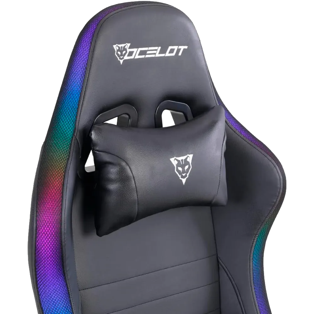 Silla Gamer Ocelot Gaming Rgb, Base Ajustable De Metal, Descansa Brazos Ajustables De 4 Dimensiones Y Angulo De Inclinacion 155 Grados, Soporta Hasta 150kg, Cojin De Descanso Lumbar Y Cervical