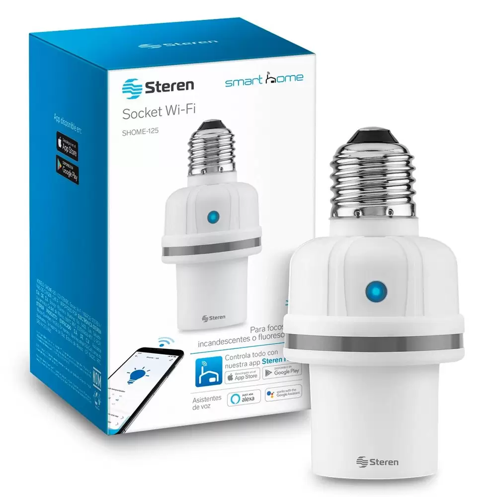 El control es por medio de la app Steren Home, donde es posible crear horarios de encendido/apagado y rutinas, compartir el control a otros usuarios y mucho más.
