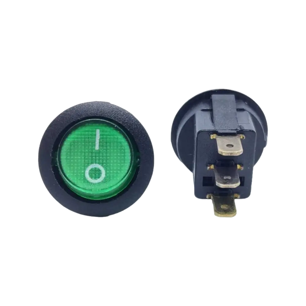 Switch Balancin Con Foco Piloto On-off Circular Verde 6.5a 250vac ó 13a 125vac 3 Pines