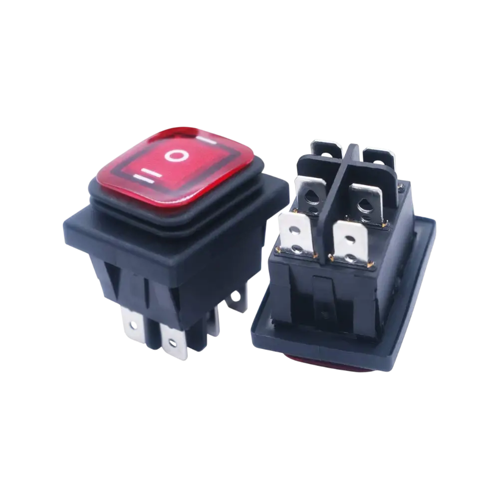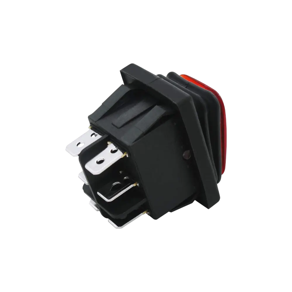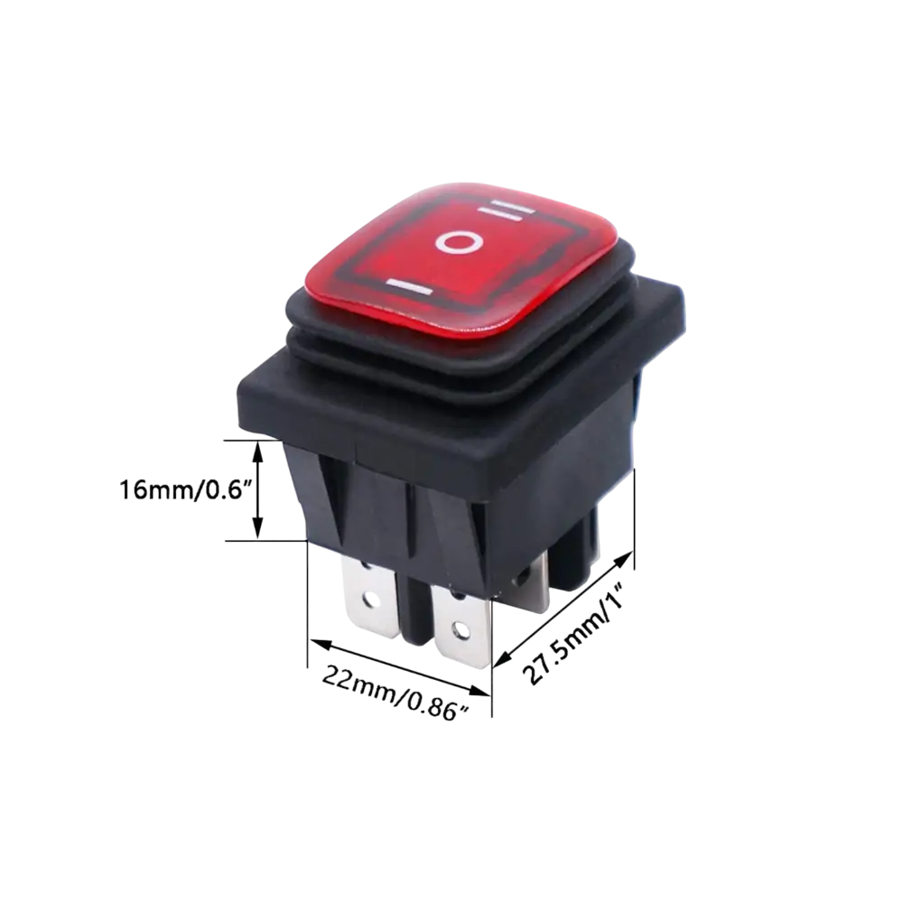 Switch De Balancín Rojo Doble Posición 6 Pines Con Cubierta De Silicón 30a 250vac O 35a 125vac 28x38 Mm