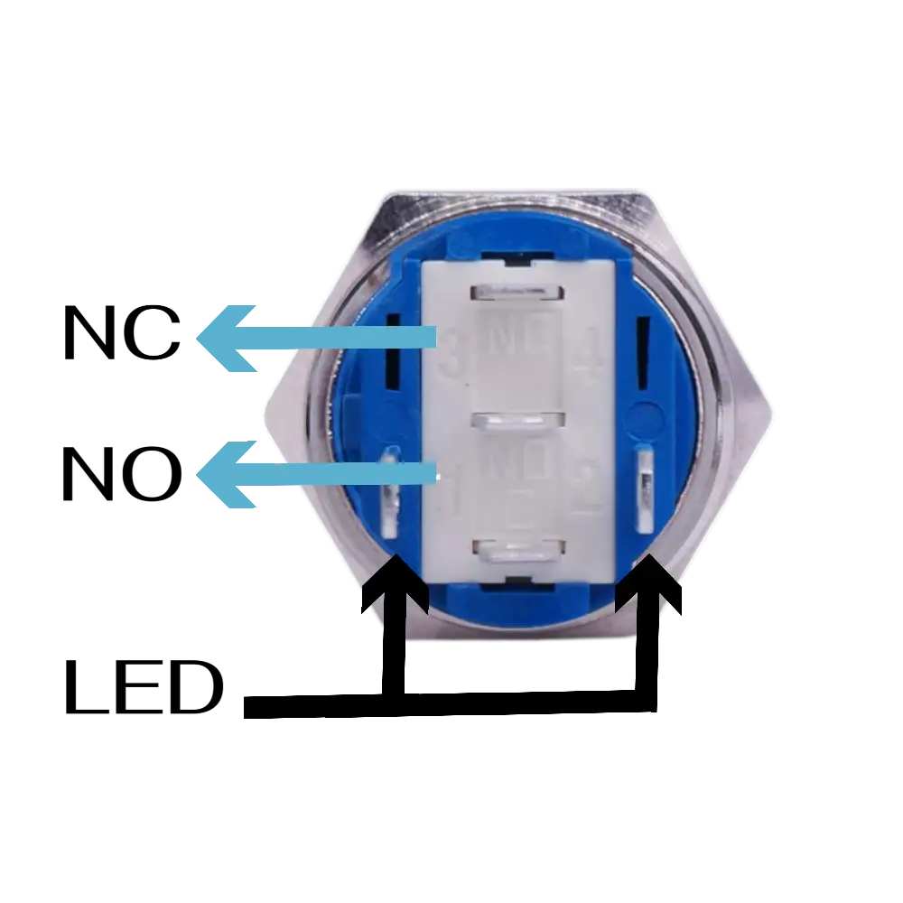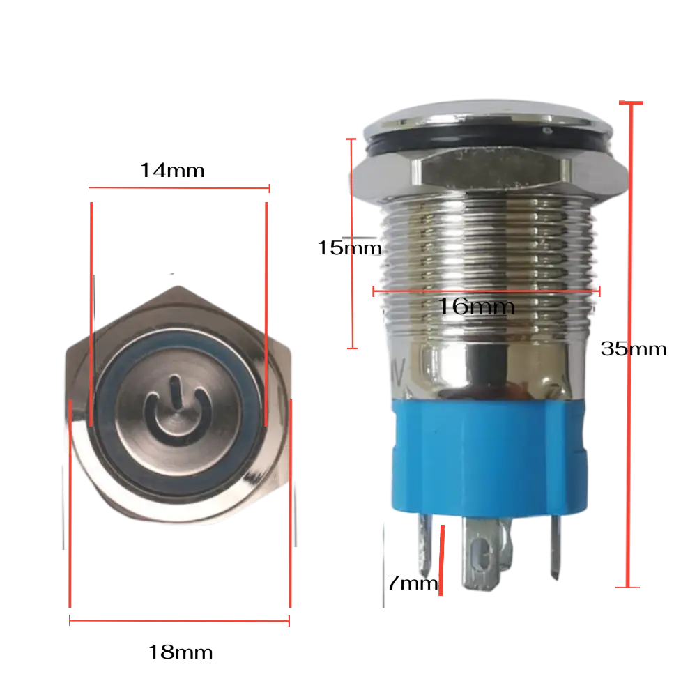 Switch Pulsador Metalico Con Foco Piloto 12-24v 3a No-nc 5 Pines