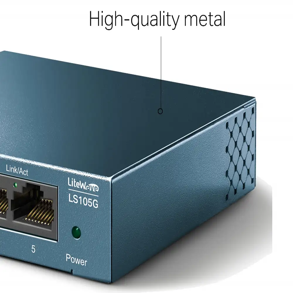 Carcasa Metálica DuraderaLos componentes internos del LS105G están protegidos por la carcasa metélica de alta calidad asegurando la vida útil del equipo. Habiendo pasado una serie de rigurosas pruebas de fiabilidad, el LS105G ofrece un rendimiento de conmutación en el que puede confiar. Su tamaño compacto lo hace ideal para su instalación en escritorios o bancos de trabajo. |