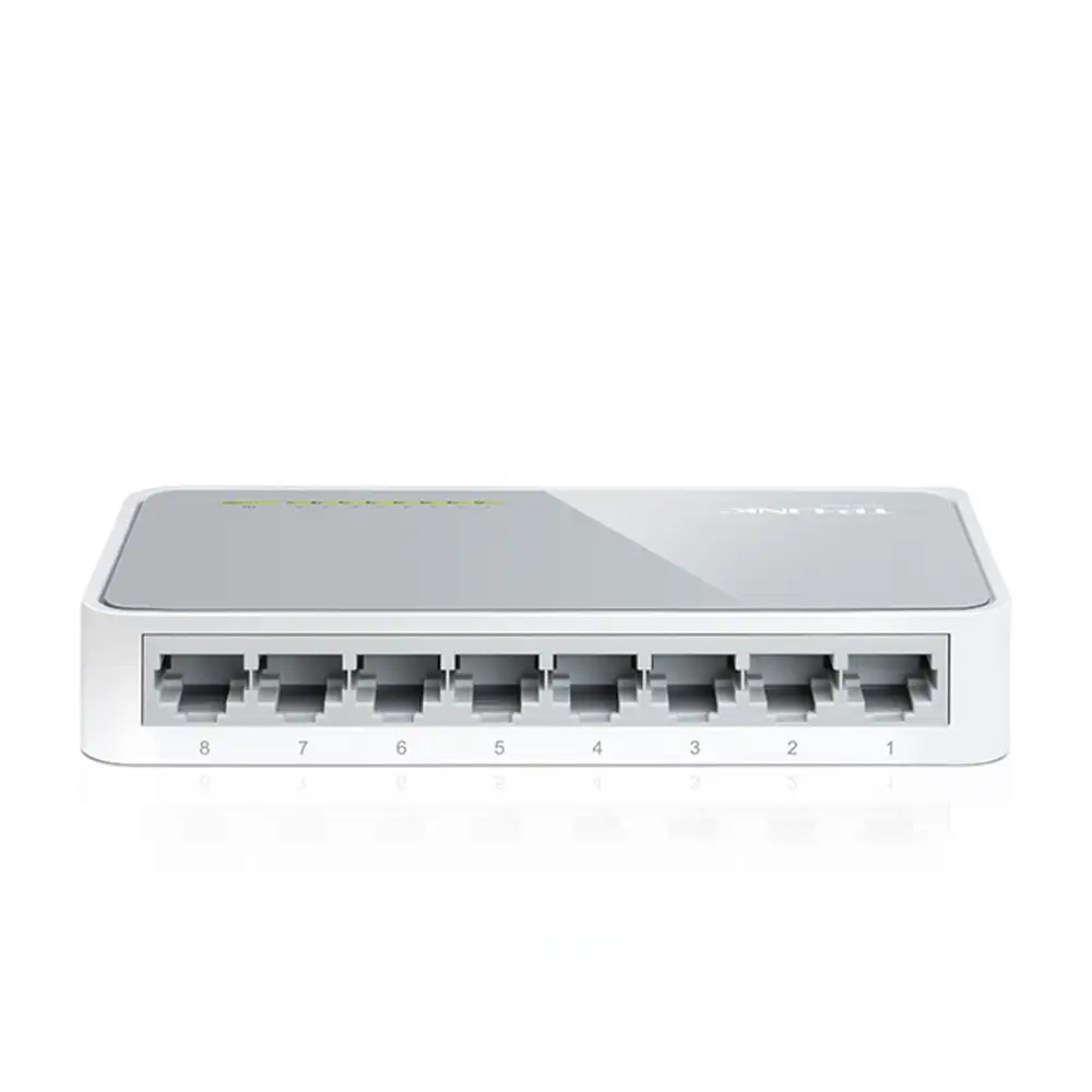 El switch Fast Ethernet TL-SF1008D está diseñado para las oficinas pequeñas y reducidos grupos de trabajo. Los 8 puertos soportan MDI/MDIX automático, lo que le evita tener que preocuparse de qué cable debe utilizar: sólo tiene que enchufarlo y listo. Además, gracias a su innovadora tecnología de eficiencia energética, el TL-SF1008D ahorra hasta un 60%* de energía eléctrica, lo que lo convierte en una solución ecológica para la red de su negocio.