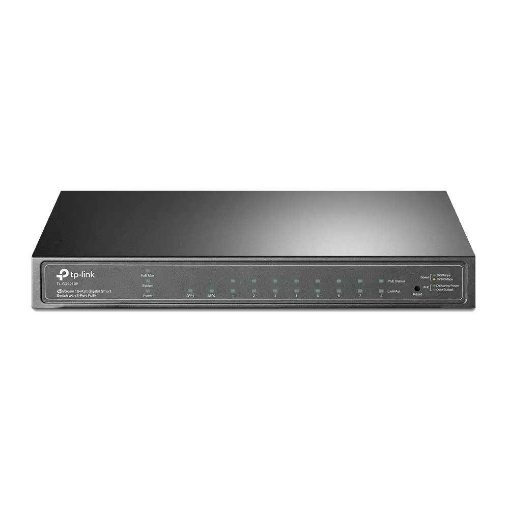 El switch inteligente gigabitl tl-sg2210p de TP-Link está equipado con 8 puertos RJ45 gigabit y 2 ranuras SFP, todos los puertos RJ45 soportan el estándar de PoE con una energía PoE total disponible de 53w y características útiles de administración de energía PoE. El switch proporciona un alto desempeño, QoS a nivel empresarial, estrategias de seguridad útiles y características de administración de capa 2. Lo que es más, su interfaz fácil de usar de administración a través de internet significa un ajuste y configuración más rápidos con menos tiempo muerto, proporcionando la solución ideal para su red del negocio.