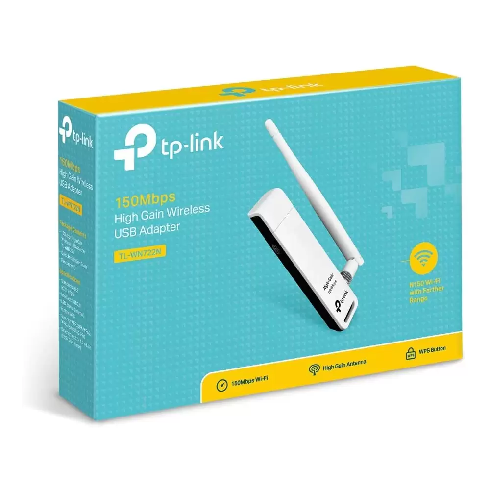 El adaptador USB inalámbrico N TL-WN722N le permite conectar su ordenador de sobremesa o portátil a una red inalámbrica y acceder a ella a alta velocidad. Conforme con el estándar IEEE 802.11n, ofrece una velocidad inalámbrica de hasta 150 Mbps, perfecta para jugar online o reproducir vídeo en streaming Además, permite la encriptación de la red inalámbrica con tan solo pulsar el botón QSS (Quick Setup Security) previniendo así las amenazas externas.