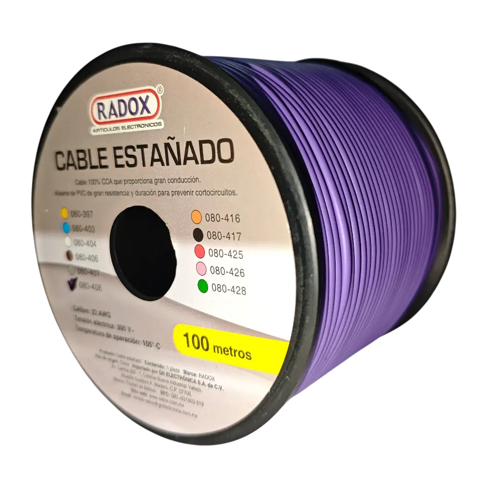 100 Metros De Cable Cca 22awg Morado En Rollo